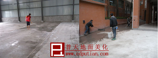 起灰的地面可以采用喷雾器喷涂施工,并用尘推涂抹均匀;一般起沙和严重起沙地面可用泼洒的方式进行施工,并用尘推及时涂抹,直至地面吸收饱和。施工时根据地面局部起沙严重程度可酌情增加或减少单位面积涂刷用量。