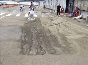 根据现场实际情况选择高压冲洗、研磨、铣刨等工艺对地面进行处理: