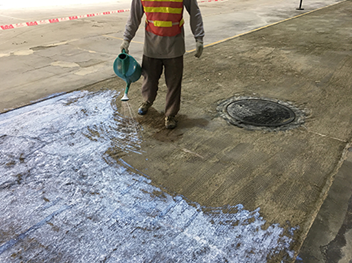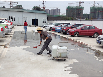 用混凝土密封固化剂硬化地面,增加地面强度,防止起砂: