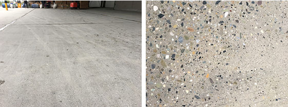 用重型地坪打磨机配粗磨片,对地面进行多次打磨,直至去除表层浮浆,获得较好的表面效果。如下图:
