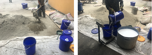 将水泥、地坪修补剂(聚合物乳液)、水按比例调配成型。如下图: