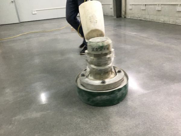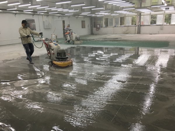 再次喷洒固化材料,打磨机分别换上不同目数的树脂磨片从粗到细将地面进行打磨处理,每次打磨我完都要及时清理地面。
