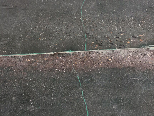 问:我们车间的地面是金刚砂地坪,长期使用已经很老旧了,后来找地坪公司做了混凝土密封固化剂抛光处理,其它效果都很好就是有些地方颜色不一样,尤其是伸缩缝周边。请问这是什么原因呢?