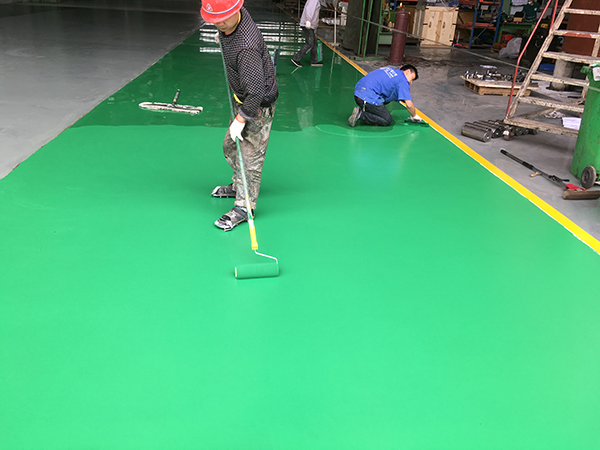 答:聚氨酯超耐磨地坪一般是指在做好的环氧地坪基础上在施工一层“聚氨酯超耐磨材料”。施工时将地面清洁干净,然后将搅拌好的材料少量倒在地面上,用刮刀贴地批刮,然后另一人员穿钉鞋持专用滚筒来回交叉滚涂,消除批刮刀痕即可。大面积施工时需要多人配合施工。