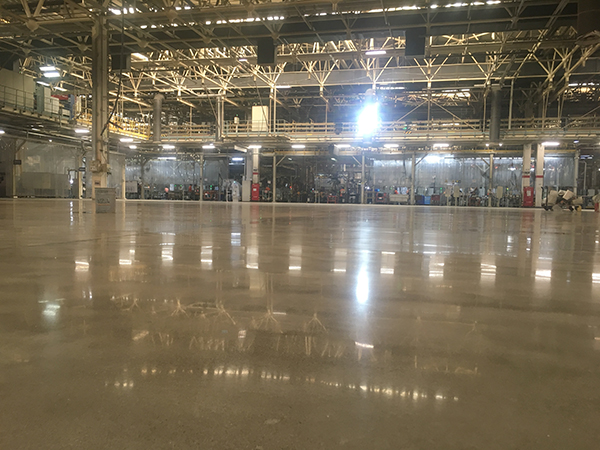 问:我们的新厂房水泥地坪固化施工后为什么颜色不一样,两块相邻的地面颜色明显有差异,一块颜色偏黄,一块颜色偏灰。